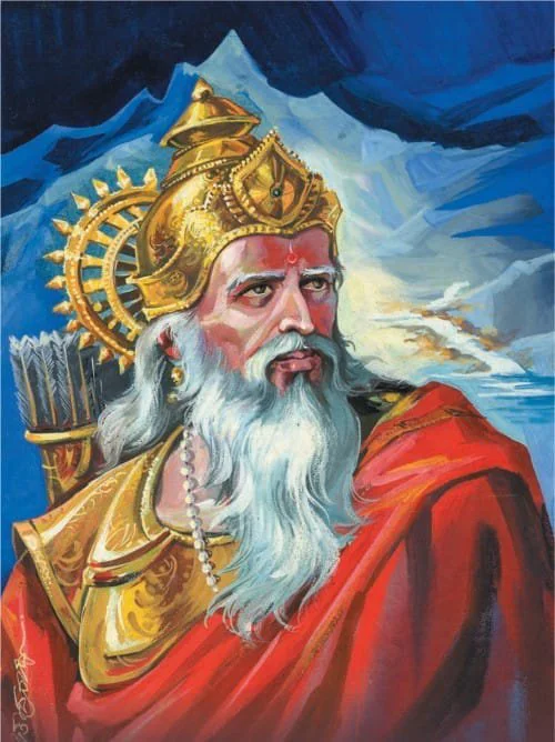 La scène était, pour le moins dire, assez dramatique. Le corps du guerrier était transpercé d’une abondance de flèches. Cependant, ayant reçu la bénédiction de quitter son corps au moment de son choix, Bhīṣma était toujours vivant.